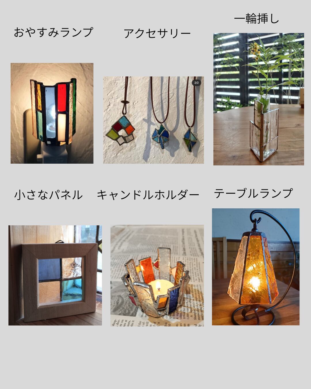 【体験コース】 ★ステンドグラス体験のご案内とご予約 ★陶芸体験のご案内とご予約 【教室コース】★ステンドグラス・陶芸教室【1回制作コース】★ ランプ・キャンドルスタンドコース |